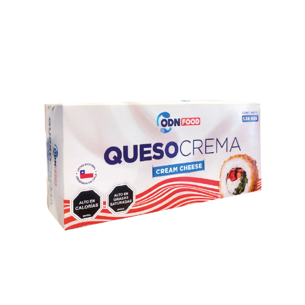 La marca ODN FOOD produce y vende queso crema en formato de 1,36 kg, un tamaño comúnmente utilizado en el sector gastronómico para preparaciones como sushi y repostería.